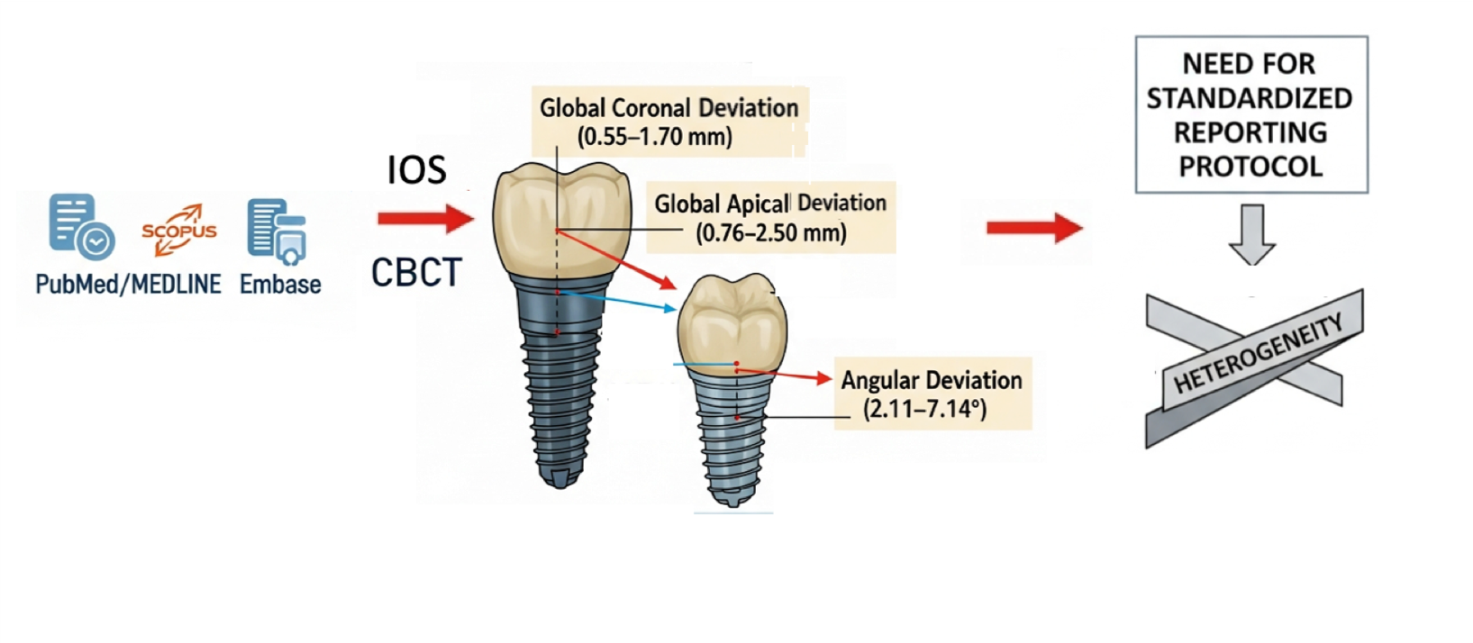 - To identify, classify, and compare the reference systems (e.g., CBCT, IOS) and measurement technologies used to capture the achieved implant position and perform the planned-to-achieved superimposition.