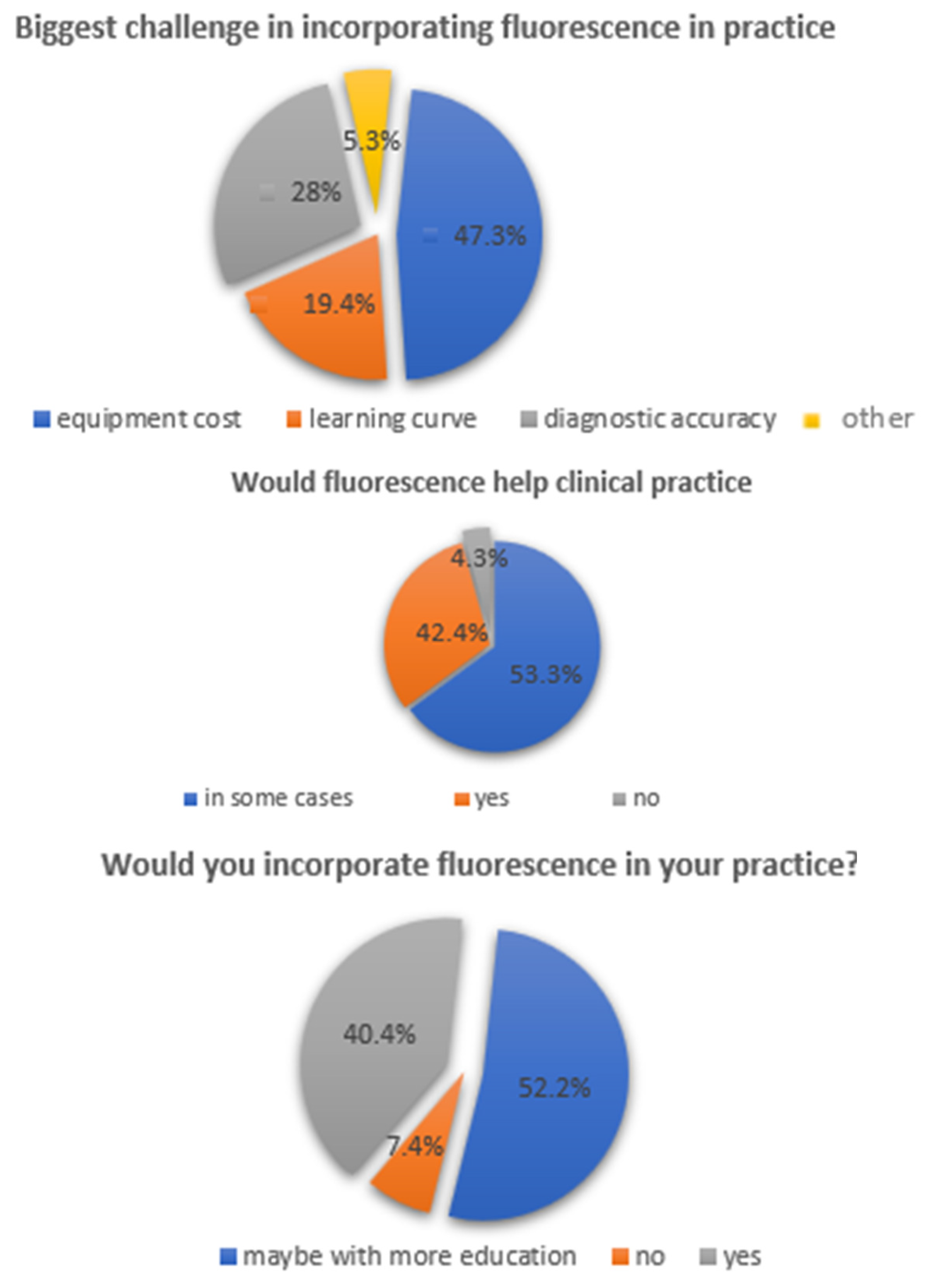 Regarding clinical integration, most participants expressed willingness to adopt fluorescence imaging, although concerns about cost, learning curve, and accuracy were reported (