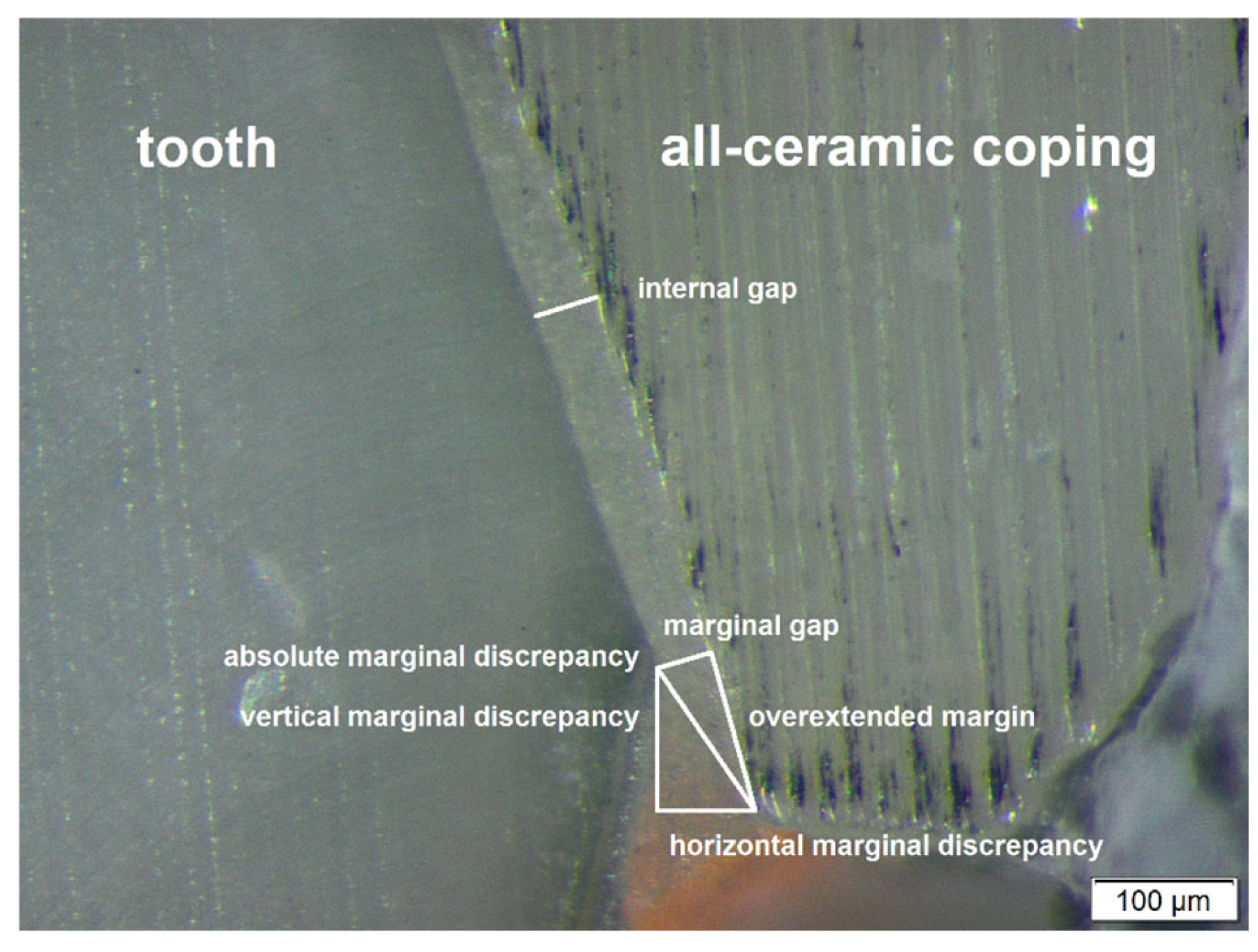 8]. It is one of the most important parameters for the quality of the crown, because it represents the area for the penetration of chemical and biological noxae. There is no agreement in the literature regarding the maximum size of an acceptable marginal gap [