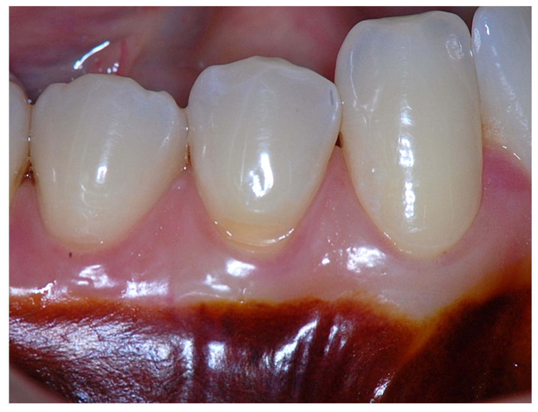 Finally, an insufficient width of attached gingiva, in combination with the histological characteristics of epithelial and connective tissue attachments, may represent a contributing risk factor for the initiation and progression of gingival recession, particularly in the presence of mechanical trauma. The present article adopts a narrative, concept-oriented approach without a systematic protocol, formal quality assessment, or meta-analysis; therefore, selection bias cannot be excluded. The clinical cases presented are illustrative rather than generalizable, while still allowing integration of classical and contemporary evidence and discussion of persistent biological and clinical controversies.
