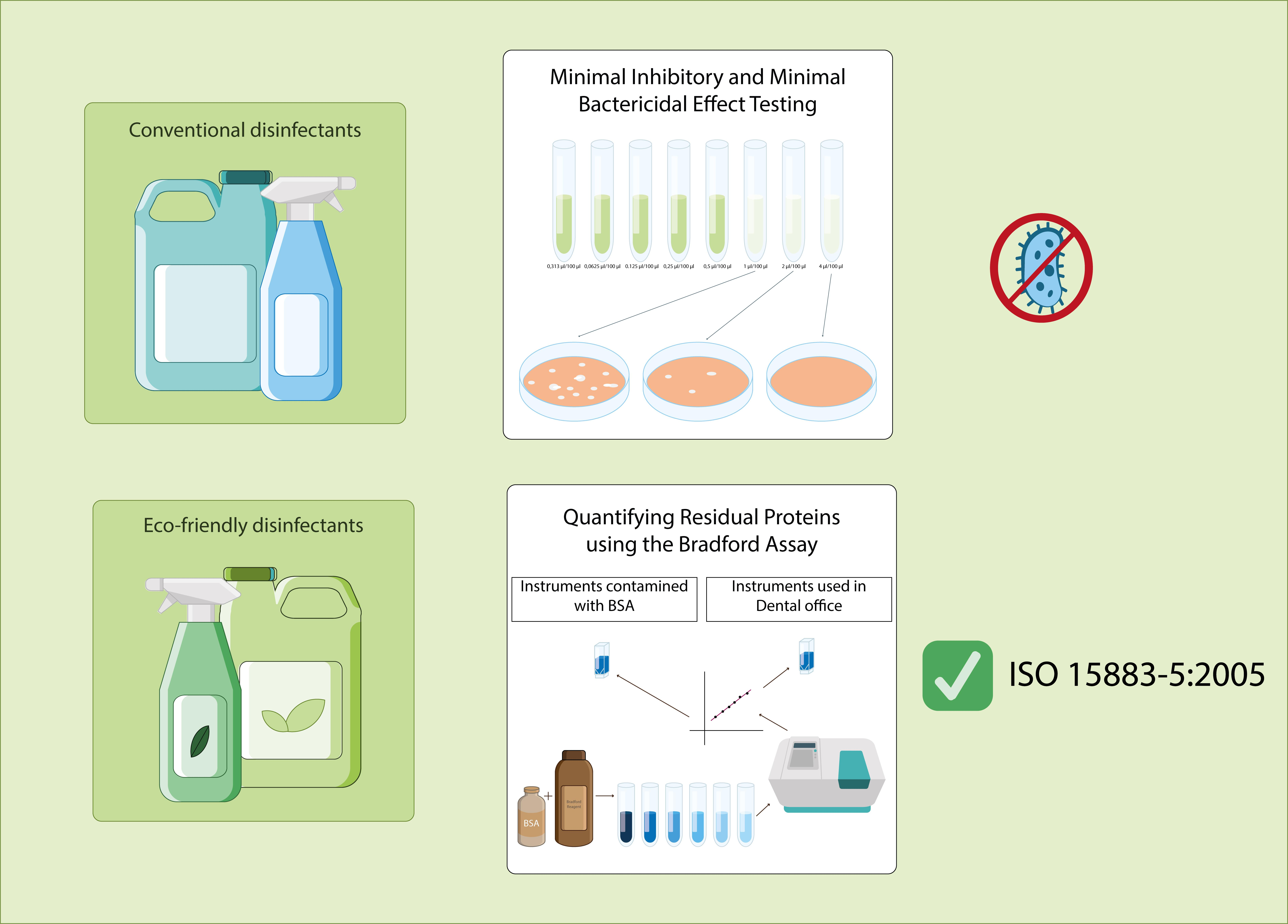 Veress, S.K.; Bába, L.-I.; Bitai, A.; Bögözi, B.B.; Kerekes-Máthé, B.; Száva, D.T.; Székely, M. Experimental Comparative Analysis of the Effectiveness and Cleaning Performance of Conventional and Eco-Friendly Disinfectants Available in Romania. Dent. J. 2026, 14, 159. https://doi.org/10.3390/dj14030159