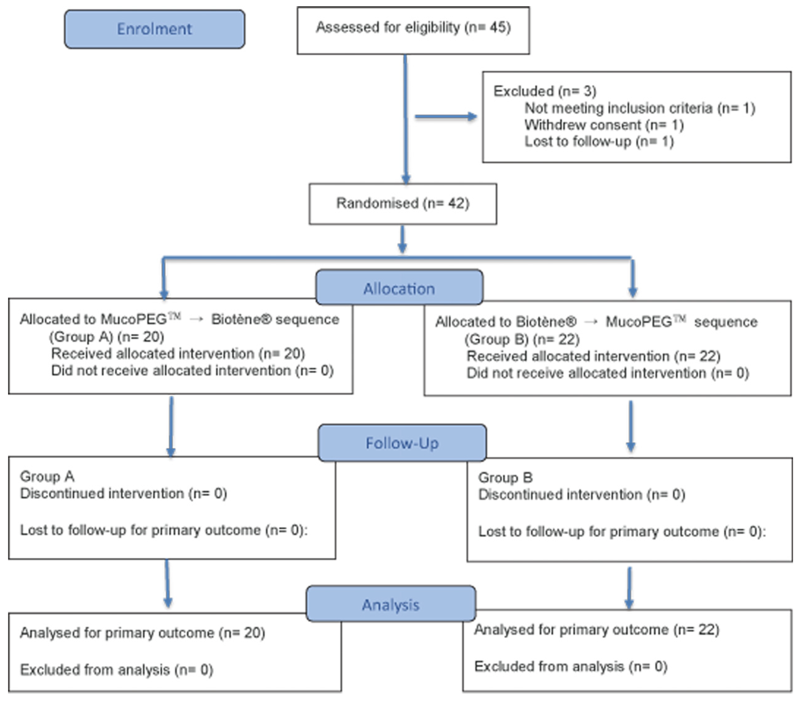 | Screening | MucoPEG™ | Biotene® | Screening | MucoPEG™ | Biotene® | Screening | MucoPEG™ | Biotene® | ||