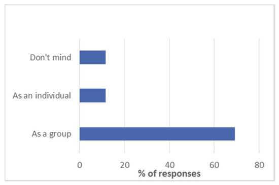 Illustrates that the participants preferred to deliver their feedback as a group rather than individually. A small number of participants did not mind whether they were part of a group or not.