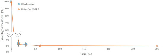 3.3. Time Course Study of S. mutans treated with 250 µg/mL EGCG-S and Chlorhexidine Gluconate