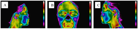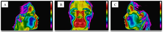 For the acquisition of the thermographic images, a document containing a set of indications was given to the participants in advance. In the previous 24 h of the appointment, the use of anti-inflammatories, analgesics, corticosteroids, or any other substance that could alter neuropsympathetic function should be avoided The participants are also instructed that on the day of the examination, should avoid hot drinks (e.g., coffee, tea) for at least 2 h before the thermal images are captured, any jewelry have to be removed, and the application on the face of any type of make-up/creams and perfumes should be avoided, as well. The male participants must be shaved.