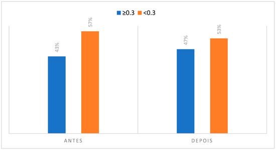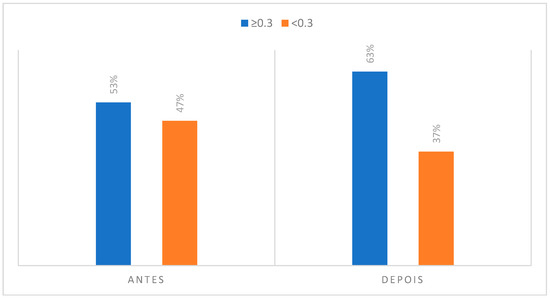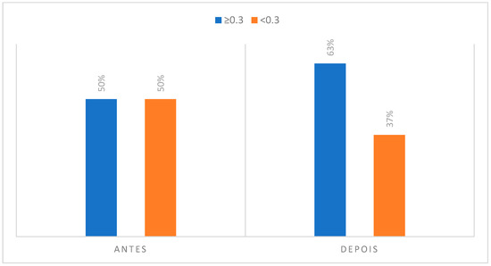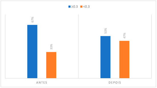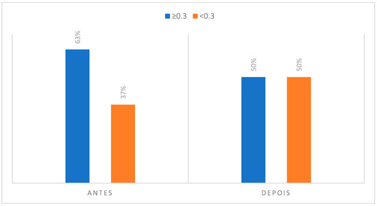 Contrary to all other regions of interest in the thermographic study, the perioral teguments and dentoalveolar components suffered a decrease in the number of individuals who presented an asymmetry greater than or equal to 0.3 °C. That is, in the case of the perioral teguments before musical performance there was a percentage of 67% of individuals with a temperature differential of more than 0.3 °C and, after musical performance this value decreased to 53%. Regarding the analysis of the dentoalveolar components, namely at the upper incisor level, there was also a decrease in the number of individuals with a temperature asymmetry greater than or equal to 0.3 °C when compared to the initial moment of acquisition of the infrared images with the final moment. It can also be noted that 77% of clarinetists reported pain and/or discomfort in relation to the dentoalveolar components, 66.7% of which were in teeth 21 and 11.