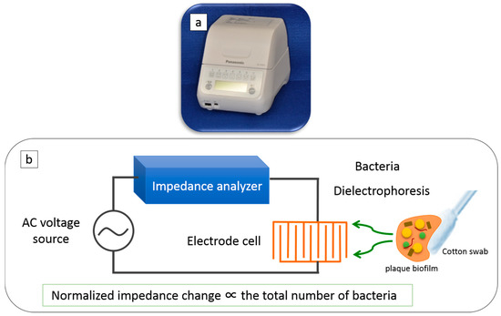 - Hirota, K.; Inagaki, S.; Hamada, R.; Ishihara, K.; Miyake, Y. Evaluation of a rapid oral bacteria quantification system using dielectrophoresis and the impedance measurement. Biocontrol Sci. 2014, 19, 45–49. [Google Scholar] [CrossRef] [PubMed]