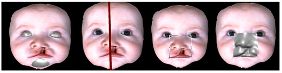 - Wu, J.; Heike, C.; Birgfeld, C.; Evans, K.; Maga, M.; Morrison, C.; Saltzman, B.; Shapiro, L.; Tse, R. Measuring Symmetry in Children with Unrepaired Cleft Lip: Defining a Standard for the Three-Dimensional Midfacial Reference Plane. Cleft Palate Craniofac. J. 2016, 53, 695–704. [Google Scholar] [CrossRef] [PubMed]