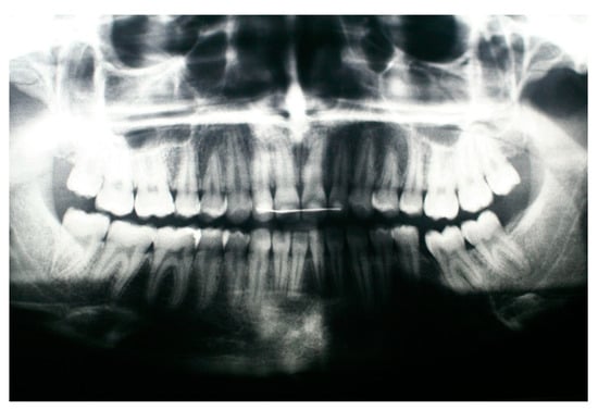 - Andreasen, J.O.; Petersen, J.K.; Laskin, D.M. Textbook and Color Atlas of Tooth Impactions: Diagnosis, Treatment, Prevention; Munksgaard: Copenhagen, Denmark, 1997. [Google Scholar]
