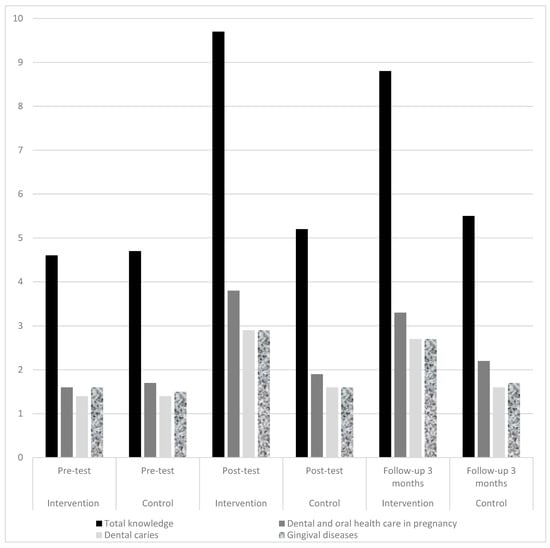 The results of our study showed that three months after receiving the educational workshop on oral health in pregnancy, the knowledge and attitude of the midwifery students improved. The intervention group’s mean pre-test knowledge score was 4.6 from the total score of 10 and regarded low. In other studies, the mean knowledge score of midwifery students were recorded as 26.7 from total score of 100 [], and 5.2 from eight [], which were also undesirable. These results are also comparable to similar studies on gynecologists and their low mean knowledge score of 7.99 from the total score of 11 [].