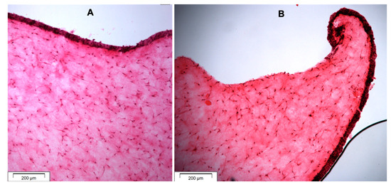 Incorporation of chitosan and chondroitin sulphate did not have any significant adverse effects on the viability of monolayer cell cultures or 3D oral mucosal models in this study. Both chitosan and chondroitin are considered biocompatible materials and have been widely used in scaffolds for oral and dental tissue engineering [22,30].