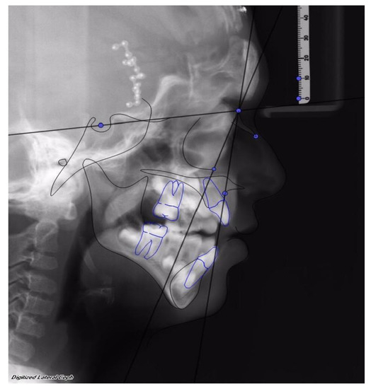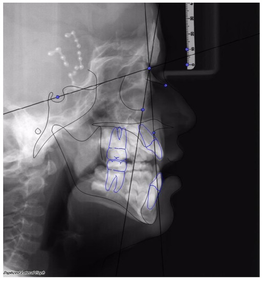 Figure 3. The same patient after 1 year from the end of treatment with MAC. SNA was 76° and SNOr was 63°.