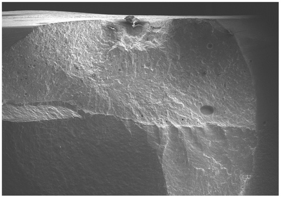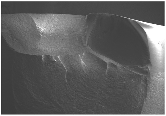 SEM micrograph of the fractured veneered-zirconia crown repaired with Vita Triluxe Forte at magnification of 22×.