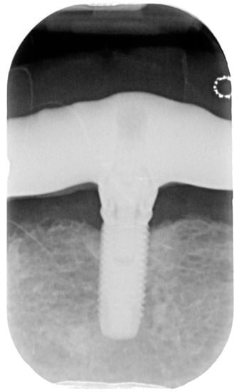 - Roccuzzo, M.; Pittoni, D.; Roccuzzo, A.; Charrier, L.; Dalmasso, P. Surgical treatment of peri-implantitis intrabony lesions by means of deproteinized bovine bone mineral with 10% collagen: 7-year-results. Clin. Oral Implant. Res. 2017, 28, 1577–1583. [Google Scholar] [CrossRef]