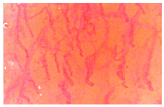 9]. An intraoral instrumental examination was performed with the subject in a sitting position, with the same light source (a 6500 °K medical neon light), at the same room temperature 23 °C, in the morning, and by the same operator. It is important to emphasize that the parametric data originated from software related to videocapillaroscopy using a dedicated measuring instrument, with each optical magnification corresponding to an exact value of metric pixels in the scanned image. The capillaroscope used was the most recent generation videocapillaroscope. The apparatus consists of a handpiece, 3–4 cm in diameter and 11 cm long, weighing 180 g, equipped with microfocus to bring the area being examined into exact focus and allow the operator to work easily in all directions. At the working end, there is a high-resolution camera equipped with a contact scanning system and epiluminescence immersion; microillumination provided by a white light LED; high brightness achromatic optics with micro focus; and a 30× optical zoom with the possibility to get up to 150× magnification through the magnification module, with the horizontal and vertical resolution down to 0.4 μm (Videocap 100 VCS). The nonworking end was connected directly to a computer via a single USB cable (3.0), through which it received power and provided the digital information. The company provided the software (Videocap 100 VCS) that made acquiring and reporting data both fast and easy.