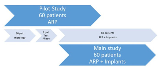 Division of patients into the pilot study and the main study. ARP: alveolar ridge preservation.