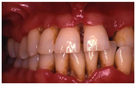 - Newman, M.G.; Takei, H.H.; Klokkevold, P.R.; Carranza, F.A. Carranza’s Clinical Periodontology, 12th ed.; Saunders Elsevier: Philadelphia, PA, USA, 2011. [Google Scholar]