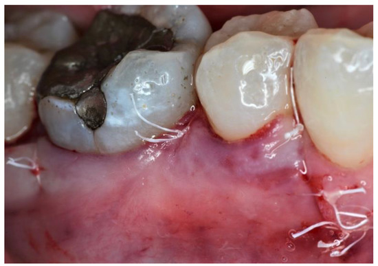All patients received amoxicillin twice daily for 6 days (Zimox, Pfizer Inc., New York, NY, USA) and ibuprofen twice daily for 3 days (Brufen 600 mg, Mylan, Milano, Italy and were instructed to discontinue tooth brushing; instead, patients were asked to rinse two times/day with a 0.12% chlorhexidine gluconate solution (Periodex, Zila Pharmaceuticals Inc., Phoenix, AZ, USA) for four weeks. Sutures were removed after 14 days. After 30 days from surgery, patients were instructed to use a soft toothbrush (Gum Delicate Post-Surgical Toothbrush, Sunstar Americas Inc., Schaumburg, IL, USA). Conventional oral hygiene was resumed after three months.