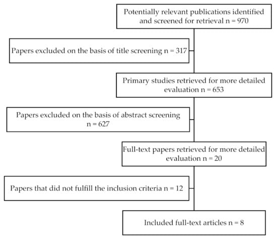 - Intervention: types of studies, e.g., “randomized controlled trials (RCTs)” OR “cohort studies” OR “case-control clinical studies” OR “cross-sectional studies” OR “qualitative studies”;