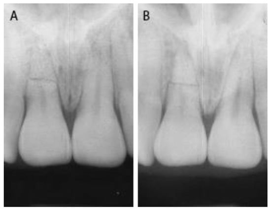 - Andreasen, J.O.; Andreasen, F.M.; Mejare, I.; Cvek, M. Healing of 400 intra-alveolar root fractures. 1. Effect pre-injury and injury factors such as sex, age, stage of root development, fracture type, location of fracture and severity of dislocation. Dent. Traumatol. 2004, 20, 192–202. [Google Scholar] [CrossRef]
