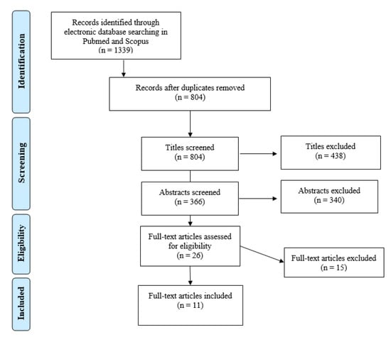 This systematic review was carried out in accordance with the criteria of the Preferred Reporting Items for Systematic Reviews and Meta-Analyses (PRISMA) guidelines [17], using a predefined search and review protocol (see Supplementary Materials Table S1). The review question of the study was formed using the PICO Model: