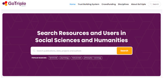 https://project.gotriple.eu/about/, accessed 7 August 2022) seeks to offer a contribution to address some of these issues and break down the siloed approach often common in SSH. It is trying to do so with the design, development, and dissemination of the GoTriple discovery platform (