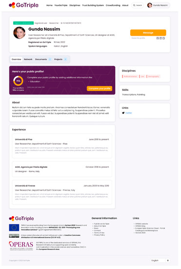 https://www.gotriple.eu/). GoTriple is a digital solution based on cutting edge web technology and design which should facilitate better discovery for SSH and foster wider collaboration. With the term discovery we mean the capacity to find, expose, and display material such as literature, data, projects, people etc., that researchers would need for their work [