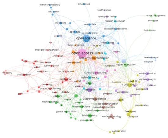 The keywords most often occurring are shown in Table 12 for both 5-year periods. Open access is by far the most discussed topic, followed by bibliometrics and scholarly publishing in the first five years of the journal. Since then, the topics in Publications seem to become more diverse. The number of different keywords that appear at least two times raised from 31 to 141. New terms appear, such as open science, open data, and fake news. The numbers only give a rough impression of the keyword distribution as concepts occur within different terms, for example, variants of open access, such as gold open access, open access publishing, or variants of bibliometrics, such as bibliometric analysis or bibliometric indicators.