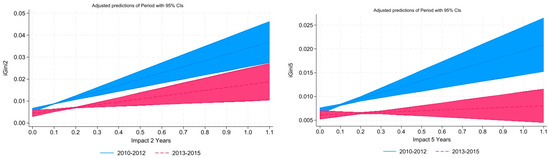 In addition to the fixed and random models of panel data, we used the Analysis of Variance between Subjects (ANOVA) to calculate the size of the Spell effect; the explained variance rate was calculated by dividing the value of the sum of Type III squares by the total corrected variance, as suggested by Snijders and Bosker [66]. Thus, 2- and 5-year impacts, as well as 2- and 5-year iGini, were incorporated into these models as variables to be tested. The effect of including journals in Spell was also tested—based on the variable “Period”—in order to check whether the means recorded for impact and inequality differed from each other between 2013–2015 and 2010–2012. Similar to fixed panel data models, we controlled part of the non-observed effects by incorporating the factor “Journal” to increase the concurrent validity degree and the Year effect. With this, we hope that fluctuations that occurred at the journal level caused by variables or events not included in the model, will not severely contaminate the analysis of the Spell effect. ANOVA models were included in Appendix A.