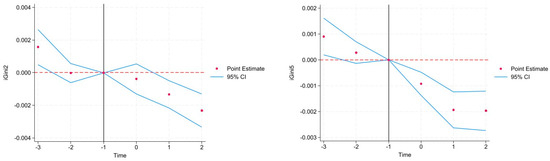 Finally, we sought to analyze the robustness of the results by investigating the temporal effect of Spell in reducing citation inequality. To this end, we used two models suitable for panel data, especially when they present serial correlation problems [65]. First, we sought to evaluate the variation between the years before (leads) and after the Spell intervention through the event studies model operationalized through STATA’s eventdd command.
