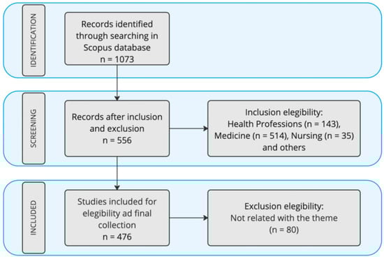 Figure 1 illustrates the information search and filtering process. Initially, 1073 English-language articles were identified in the Scopus Database, with a data cutoff date of 27 May 2024. This database was selected due to its accessibility and the quality of information available [28]. Articles in fields such as biology, engineering, and pharmacology were excluded as they did not contribute to the analysis objectives. Articles directly related to healthcare organizations, such as those focusing on healthcare professionals, medicine, nursing, and related professions, were retained. Finally, the search keywords were reviewed to ensure that the terms used aligned with the research topic. The final analysis was conducted on 476 records. The search equation used was TITLE-ABS-KEY((“ISO” OR “international organization for standardization”) AND (“health*” OR “healthcare” OR “healthcare organization” OR “health organization”)) AND (LIMIT-TO(SUBJAREA, “MEDI”) OR LIMIT-TO(SUBJAREA, “HEAL”) OR LIMIT-TO(SUBJAREA, “NURS”) OR LIMIT-TO(SUBJAREA, “DENT”) OR LIMIT-TO(SUBJAREA, “PSYC”) OR LIMIT-TO(SUBJAREA, “NEUR”)).