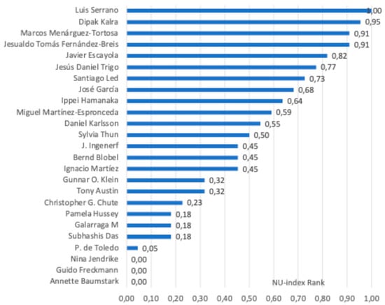 Considering the U-index results, it is noteworthy that authors like Escayola and García, who rank high in productivity (see Table 3), are displaced when applying the global index due to their lower acceptance and impact.