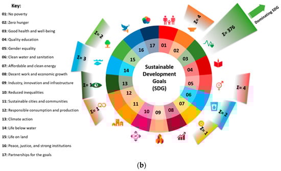 Publication performance of African countries in the neuroblastoma research field from the year of 2000 to 2024, presented as: (a) research activity; (b) sustainable development goals.