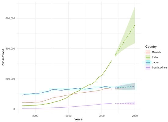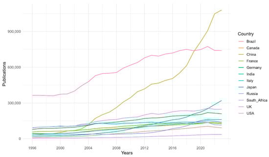 Cicero T. Forecasting the Scientific Production Volumes of G7 and BRICS Countries in a Comparative Analysis. Publications. 2025; 13(1):6. https://doi.org/10.3390/publications13010006