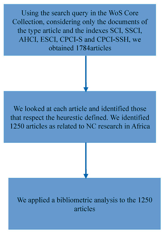 Due to the limitations of using discipline-specific terms, we analyzed each article and selected those addressing NC research in Africa. In the 1250 articles retained, we aimed to find: