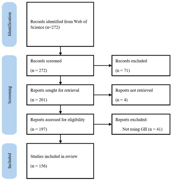 For instance, although they addressed national innovation, the article by Torres and Godinho (2023) was excluded because it employed alternative metrics of national innovation. Another example is the paper by Brás (2023), which is a data paper on the GII. After this step, we ended with a corpus of 156 articles, published in 97 journals between 2011 and 2023. Figure 2 shows the flow diagram of the article search.