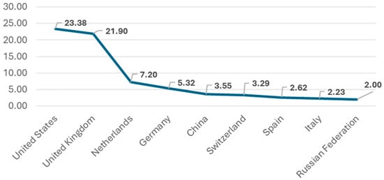 The journals included in the dataset are affiliated with institutions from 120 countries. However, as shown in Figure 3, just nine countries account for approximately 72% of the total number of publications.