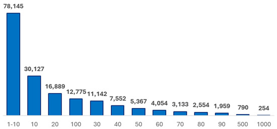 Figure 10 presents a general overview of citation distribution by range, considering only articles that received at least one citation.