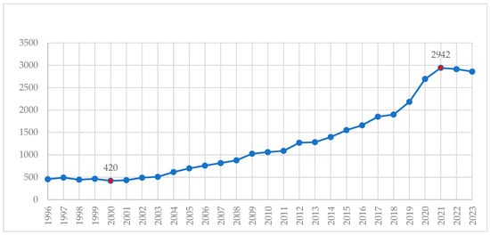 El Salvador ranks among the countries with the lowest scientific output in the Central American region. From 1996 to 2023, El Salvador produced 1816 unique publications indexed in Scopus, accounting for approximately 5% of the region’s total output. International collaboration was involved in 79% of these publications, reflecting both the country’s integration into global academic networks and the importance of strengthening national research capacities to increase autonomous production.