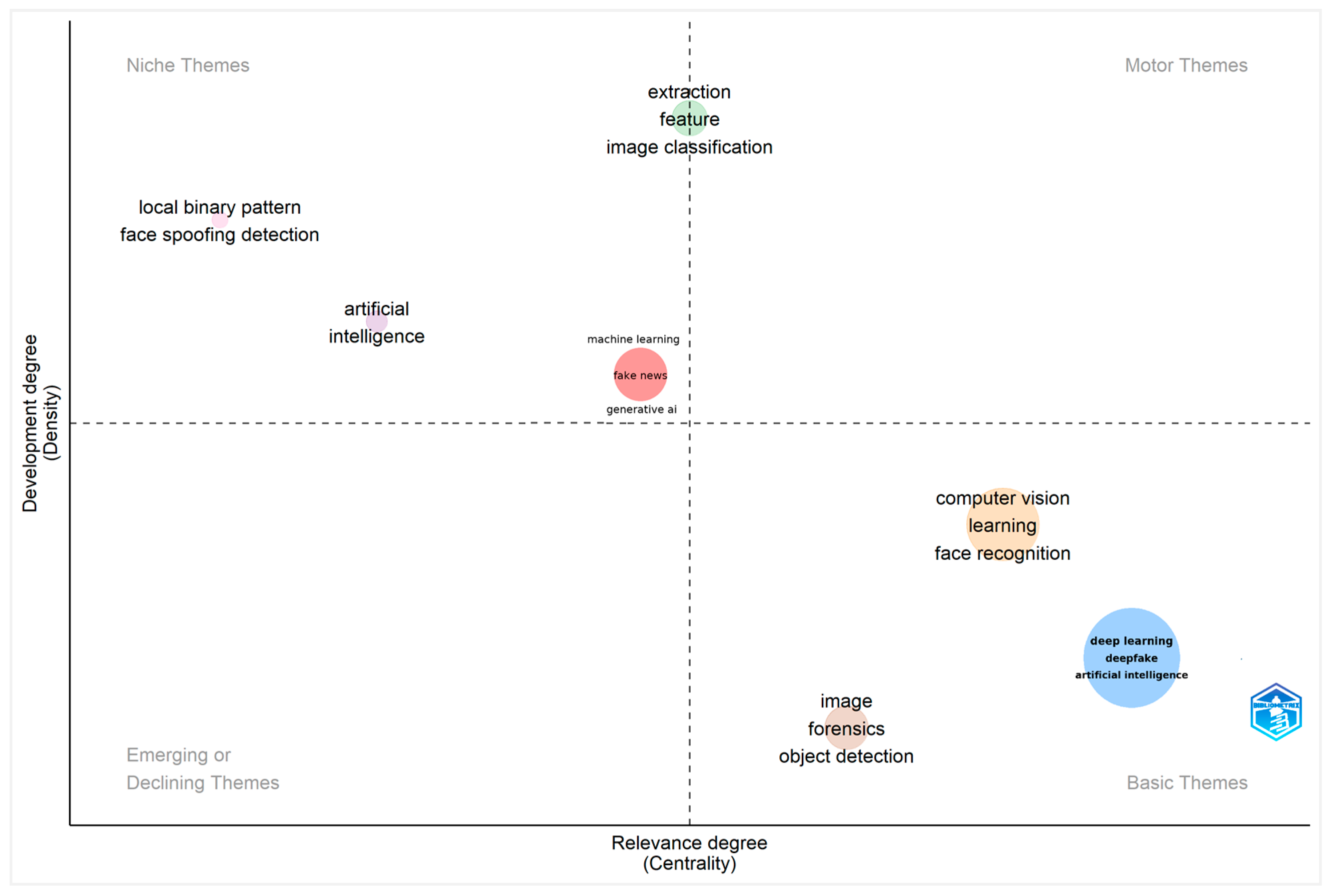 - The third group includes 11 keywords pertaining to the detection of “deepfakes”, emphasizing methods for identifying and combating manipulated content.