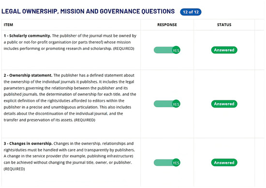 The module is very well conceived and structured with its coherent units and user-friendly interface. However, it has been proven rather challenging, especially regarding some questions on the list, which appeared to be more difficult to answer than others. Each question required considerable reflection, not so much to fully comprehend its content, but to determine an appropriate response. The answers needed to be accurate and reliable to reflect both the journal’s current situation and its alignment with the stated standards and practices.