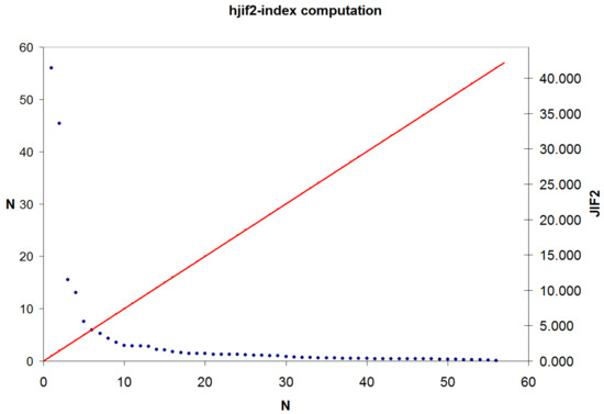 Our approach also differs from the method used by Boell and Wilson [30]. We used mapping from non-integer numbers (JIFs) to real numbers bounded by n, where n was the maximum number of different JIFs. However, the hjif-index was not defined here by rank (integer or natural number), but by the JIF related to a given n. There were no upper bounds to the hjif-index because it was defined by the maximum JIF and not by the number of publications.