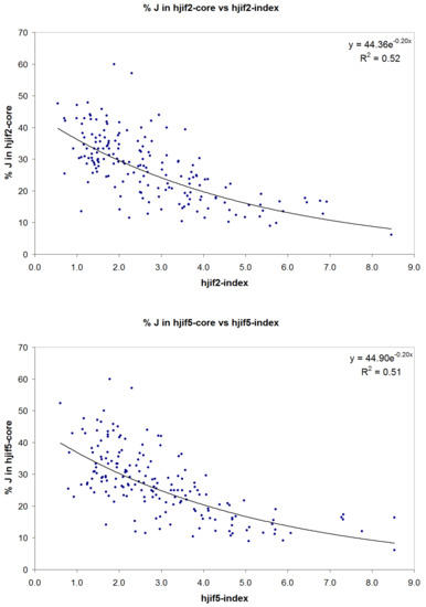 3.3. Relationship between Hjif5-Index and Hjif2-Index