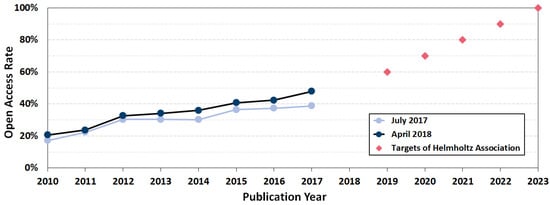 - Open Access Policy of the Helmholtz Association, 2016. Available online: http://os.helmholtz.de/open-science-in-der-helmholtz-gemeinschaft/open-access-richtlinien/open-access-richtlinie-der-helmholtz-gemeinschaft-2016/open-access-policy-of-the-helmholtz-association-2016/ (accessed on 24 May 2018).