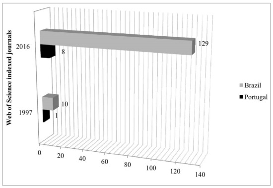 Portuguese- and Brazilian-based indexed journals (1997 vs. 2016).