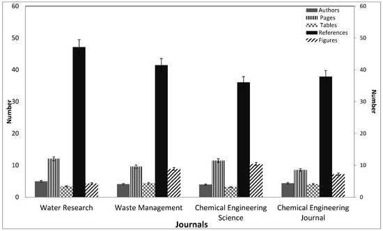 Such findings indicate a correlation between increased intelligibility (beyond the narrowly conceived discipline of environmental chemical engineering) and citability of the journals, since WR and CEJ have the highest impact factors, at 6.942 and 6.216, respectively. Technology has facilitated a major shift in knowledge exchange from exclusively printed media to a combination of available online, easily downloadable articles and printed media, expanding significantly the visibility of a paper, as the readers are not relying only on the printed resources that exist in libraries and repositories across the world [18,38].