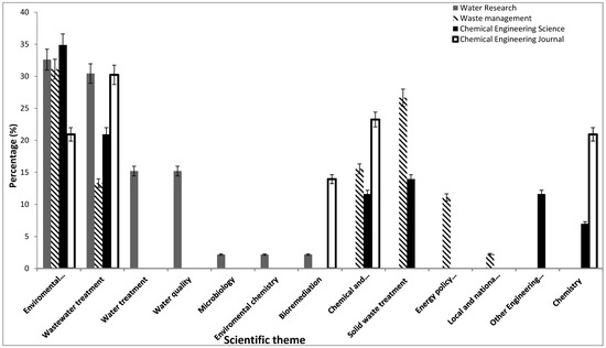 When comparing these findings to the advertised scope of each journal, certain differences were found. Among all four journals, only WR published papers that reflected the journal’s very broad approach, focusing on innovation without disregarding new approaches to current techniques. CEJ and CES had a narrower thematology, addressing highly specific subjects contrary to the journals’ advertised spectra. In the published manuscripts, emphasis was placed on optimisation of existing methods, mainly chemical treatments, rather than innovation, which cannot be applied as easily and quickly. A similar tendency was found in WM, where, in spite of the wide advertised array of publishing subjects, the published manuscripts did not cover such a wide spectrum, and focused primarily on waste management and relevant regulations, reflecting the anisomorphy between the advertised and the actual scope of the journals.