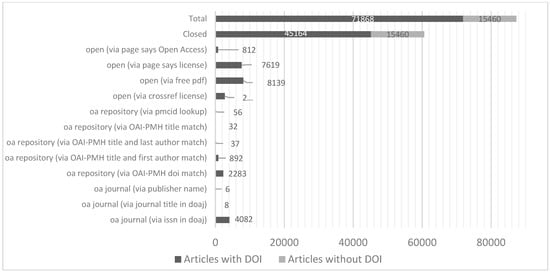 - Martín-Martín, A.; Costas, R.; van Leeuwen, T.; Delgado López-Cózar, E. Evidence of open access of scientific publications in Google Scholar: A large-scale analysis. J. Informetr. 2018, 12, 819–841. [Google Scholar] [CrossRef]