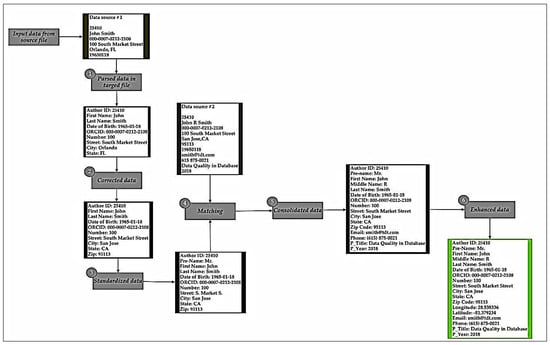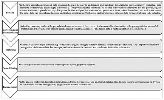 Data cleansing is done in five consecutive processes (see Figure 9) and is critical for data quality in current research information systems [,].