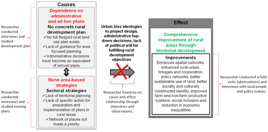 In order to confirm or refute the second hypothetical proposition (“that concrete rural development plan and area-based strategies do not exist”) with data from the field, it was possible to show that despite the opportunities provided by available legal and institutional frameworks for territorial development, the absence of a concrete rural development plan and area-based rural development strategies prevent the comprehensive rural development through territorial development (illustrated in Figure 3).